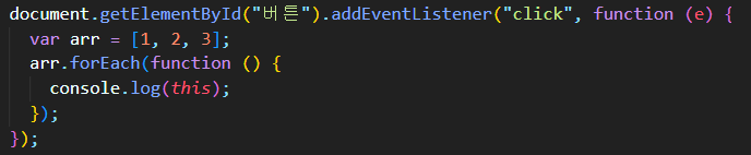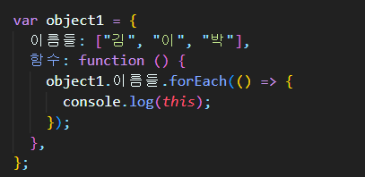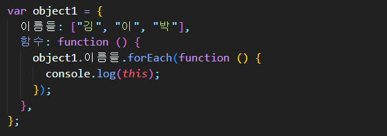 forEach() 안에 있는 함수에 this가 들어있죠?