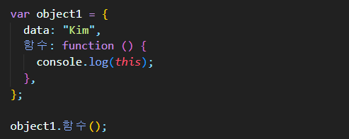 this는 메소드를 담고있는 주인님을 뜻하기 때문에 함수()를 담고있는 주인님인 object1.data라는게 위의 this랑 동일한 뜻입니다.