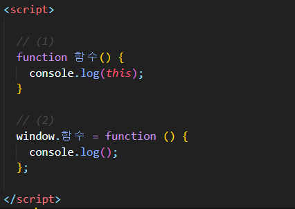 그래서 1번 : this를 함수안에서 썼을 땐 window가 나온다~ 라는 건 안외우셔도 되고