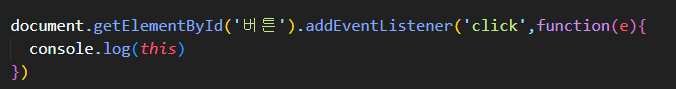 매우 간단히 설명하면 지금 addEventListener 부착된 HTML 요소를 뜻한다고 보시면 됩니다.