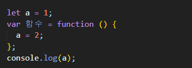 그 다음에 함수를 만들고 함수 안에서 a = 2라고 값을 변경시켰는데
