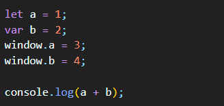 a는 let 변수로 1을 할당하고 글로벌 변수로 3을 할당했습니다.