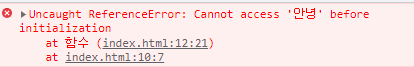 let 변수는 특이하게도 Hoisting이 되긴 하지만 undefined라는 값이 할당되지 않습니다.