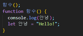 (자바스크립트 변수를 사용할 때 참조할만한 변수가 내 주변에 없으면 계속 상위 중괄호로 시선을 돌리면서 참조합니다.)