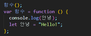 역시 이렇게 함수를 만드셔도 Hoisting이 되는데, 근데 Hoisting은 변수의 선언부분만 된다고 했었습니다.