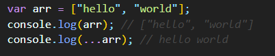 ▲ 3번줄처럼 spread operator를 붙여서 출력해보시면 괄호가 제거된 'hello', 'world'만 콘솔창에 출력됩니다.