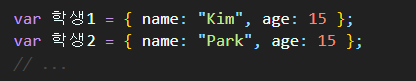 근데 = 등호를 이용해서 var 학생2 = 학생1 복사하면 큰일나니