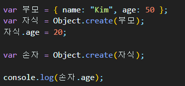 Object.create(부모object);