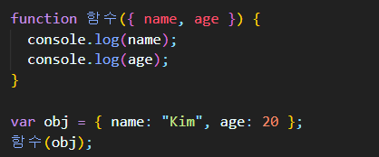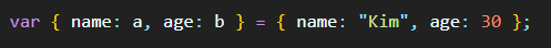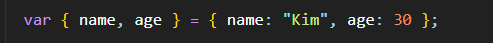 {name, age} = { name : 'Kim', age : 20 }