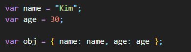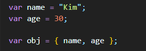 변수 이름을 오브젝트 안의 key 이름과 똑같이 맞춰줄 때는 이렇게만 쓰셔도 됩니다.