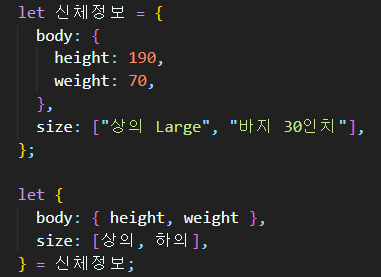 (참고 : 데이터가 얼마나 복잡하든간에 좌우 형태를 똑같이 맞추시면 destructuring 문법으로 변수를 만들 수 있습니다.)