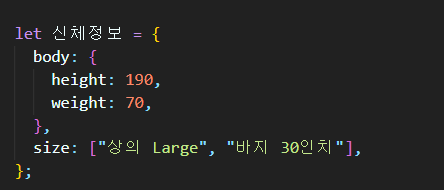 그럼 이제 height, weight, 상의, 하의라는 이름의 변수가 생성됩니다.