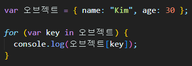 Object 자료형에 저장된 자료들을 하나씩 꺼내고 싶을 때 사용합니다.
