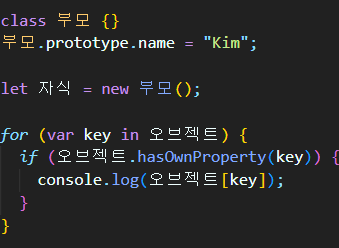 for in 반복문의 특징 2. 부모의 prototype에 저장된 것도 출력해줍니다.