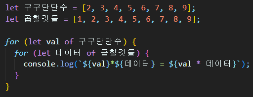 사용해봅시다. for in 반복문과 매우 유사합니다.