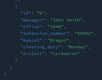 그러면 1팀의 매니저와 사무실만을 받아오는 것을 볼 수 있다.