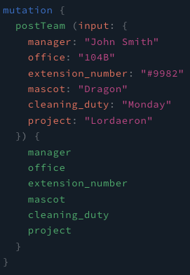 자세한 문법은 다른 포스팅에서 알아보고 이번 포스팅에서는 아하! 데이터를 입력하기 위해서는 mutation메소드를 사용하는구나 정도로 알아두자