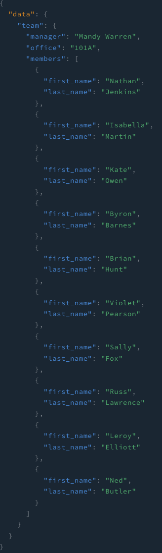 위와 같이 해당 팀 {} 안에 members{ } 그 안에 원하는 정보를 넣고 요청해주면