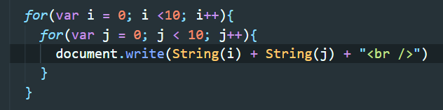 (변수 i와 j는 숫자(number)이기 때문에 문자열을 뜻하는 String으로 감싸주어야 문자와 문자를 붙이는 식으로 결과값이 출력된다. 만약 String없이 i + j 로 하게된다면 숫자와 숫자를 더하는 덧셈이 실행되어 원하는 결과가 나오지 않을 것이다.)
