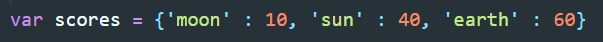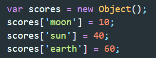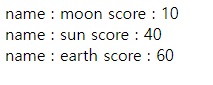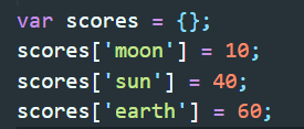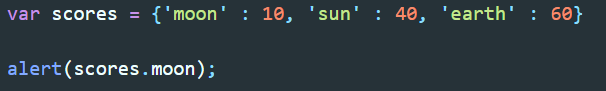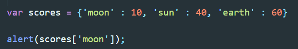 ▲ 위의 방법으로도 동일한 값을 호출 할 수 있다. 여기서 scores.moon은 'scores안에서 moon을 찾아봐라' 와 같은 의미라고 생각하면 된다.