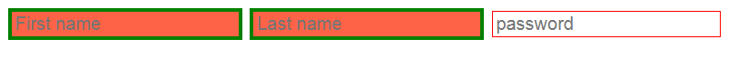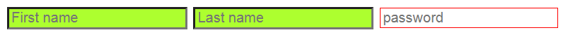 ▲ 이번에는 type이 text라는 특성을 가진 input만 선택해서 적용해보자. 위 코드에서는 First name과 Last name이 해당되겠다. 결과는 아래와 같다.