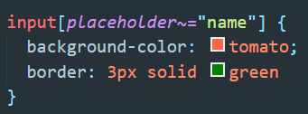 위 코드에서는 placeholder중에서 name이라는 단어가 포함되어 있는 input을 선택하겠다는 것이다.