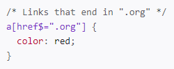 ▲ 비슷한 맥락으로 주소링크가 .org로 끝나는 링크에만 효과를 적용할 수도 있다. 이때는 $를 사용하는 것을 볼 수 있다.