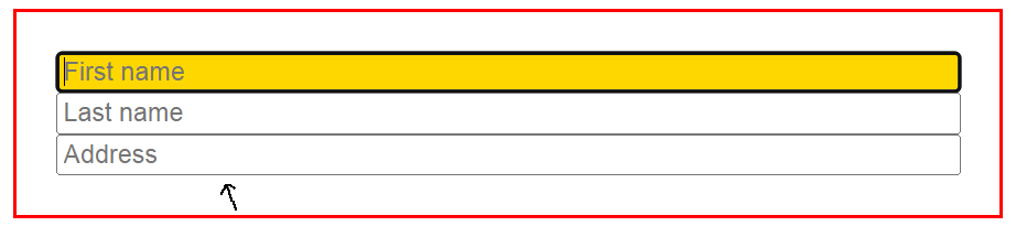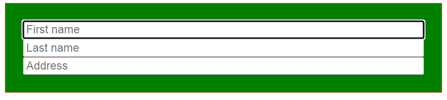 ▲ form안에 있는 input이 focus상태가 되었을 때 form의 background-color가 녹색이 된 것을 볼 수 있다. 위 예시는 First name input만을 focus했지만 다른 input들중 아무거나 focus상태가 되면 적용된다.