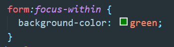 ▲ 위 코드를 말로해보자면 'form 안에있는(within) 코드들 중 하나라도 focus상태가 되면 중괄호 안의 코드를 실행하라' 라고 할 수 있다.