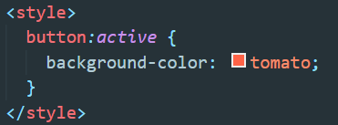▲ Pseudo Selector를 이용해서 button: 라고 한 뒤에 active기능을 사용해보자. 결과는 아래와 같다.